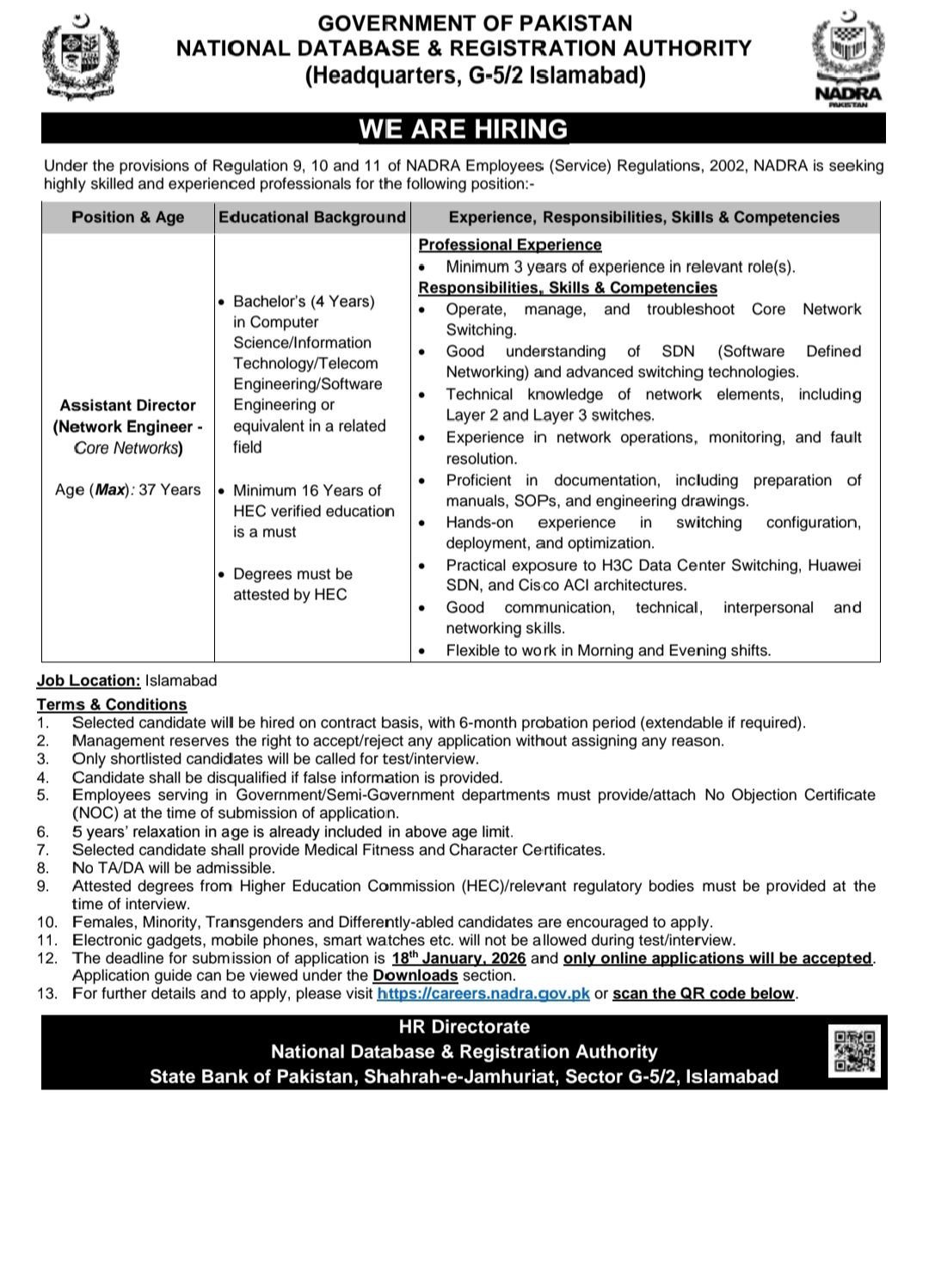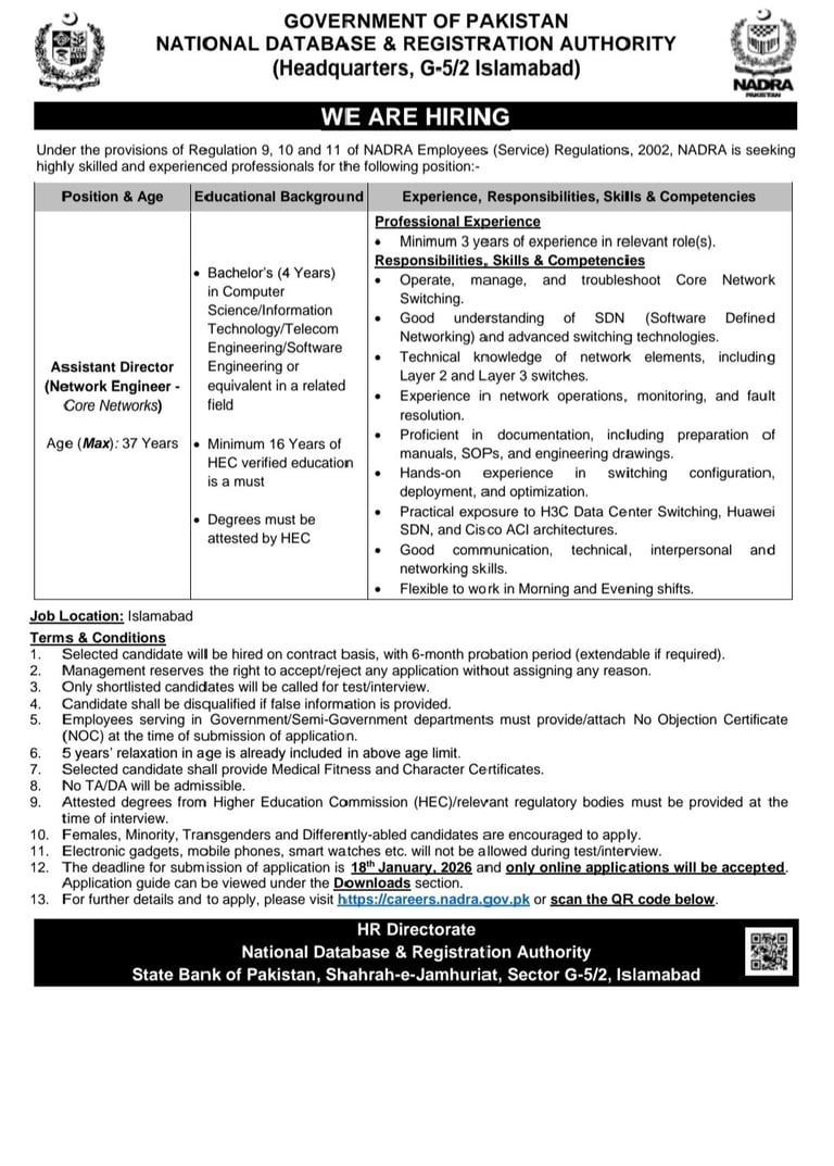 Apply Online at: https://careers.nadra.gov.pk/JobListing