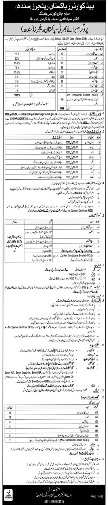 Pakistan Rangers Sindh Jobs 2026 are announced for multiple positions including Sepoy General Duty, Clerk, Medical and technical staff. Eligible candidates can apply online through the official recruitment portal.
