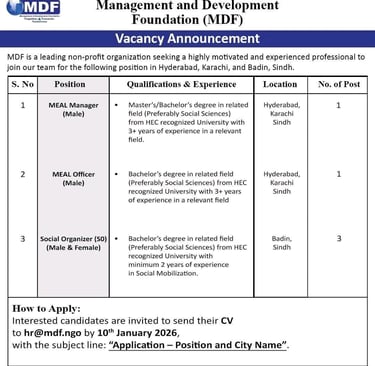 Management and Development Foundation MDF New Jobs 2026 We hope you achieve your goals and land a well-paying job. We over at https://greatpakjobs.com are working hard towards your better future, and we hope you will always support our platform.