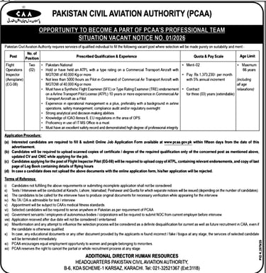 PCAA Jobs 2026, Civil Aviation Authority Jobs, Flight Operations Inspector Jobs, Aviation Jobs Pakistan, Government Aviation Jobs, ATPL Jobs Pakistan